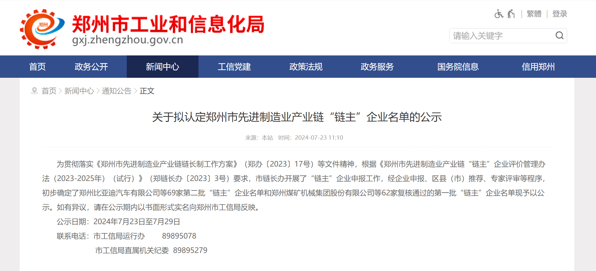 近日,郑州市工业和信息化局发布《关于拟认定郑州市先进制造业产业链“链主”企业名单的公示》,初步确定了69家第二批“链主”企业名单,并复核通过62家第一批“链主”企业。